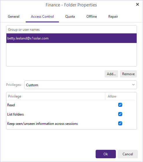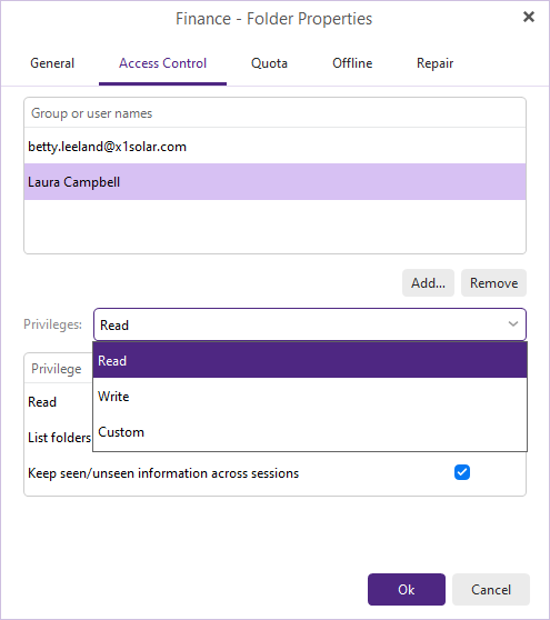 In the last step, select Privileges for individual users (you can choose from Read, Write and Custom options) – click a user and check the correct boxes. Click OK.