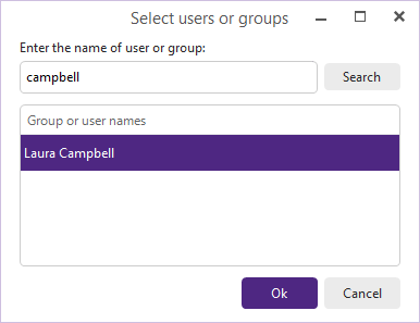 In Folder Properties dialog, click the Access Control tab to select users you want to give the access to.