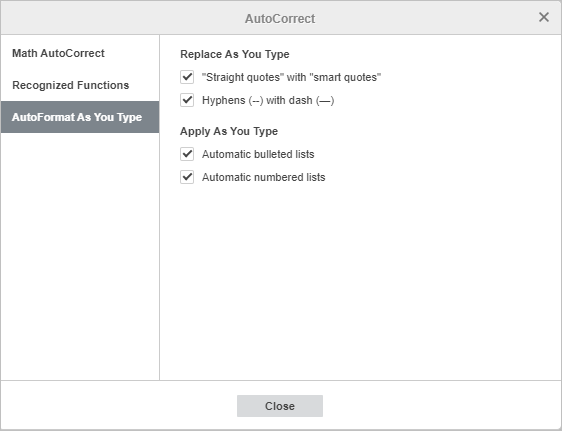 By default, the editor formats the text while you are typing according to the auto-formatting presets, for instance, it automatically starts a bullet list or a numbered list when a list is detected, or replaces quotation marks, or converts hyphens to dashes.