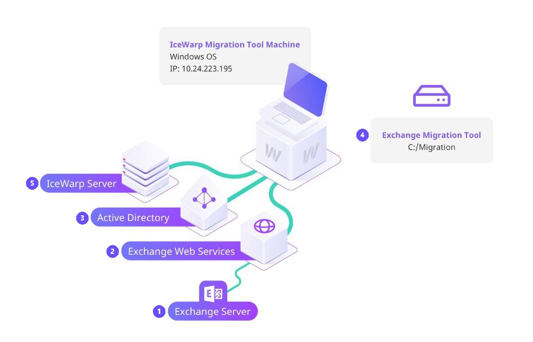 IceWarp Exchange Migration Tool enables migration of user accounts and data — including emails, calendars, contacts, tasks, and folders — from a Microsoft Exchange Server to an IceWarp Server.