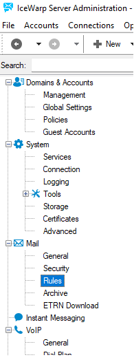 If you want to filter messages using advanced rules and make adjustments to messages, we recommend using Content Filters . The basic difference between rules and content filters consists in the fact that rules are used for received messages whilst content filters can be defined for both received and sent messages (unless defined differently within the filter itself).