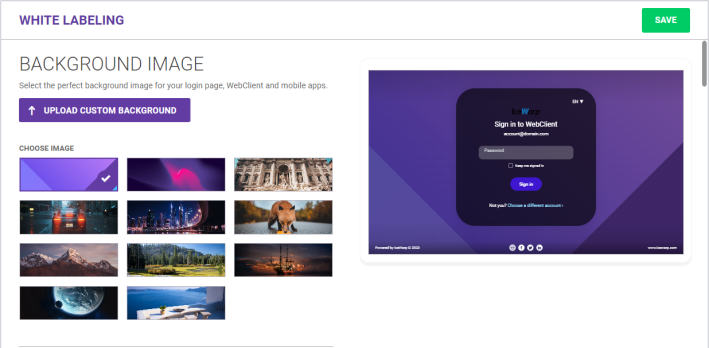 To use your own image, click Upload Custom Background and choose an image from your computer