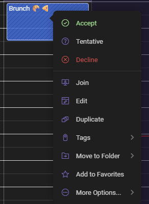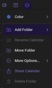 Opens a menu with additional actions for the selected calendar item, such as editing, duplicating, tagging, or moving it to another folder. |