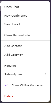 Right-clicking a contact, or selecting the (More options) icon, opens a menu with additional actions.