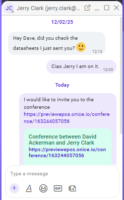 Conversations is the instant messaging feature in WebClient that enables real-time communication with users across your organization. It provides a simple and reliable interface for quick messaging, file sharing, and starting audio or video calls.